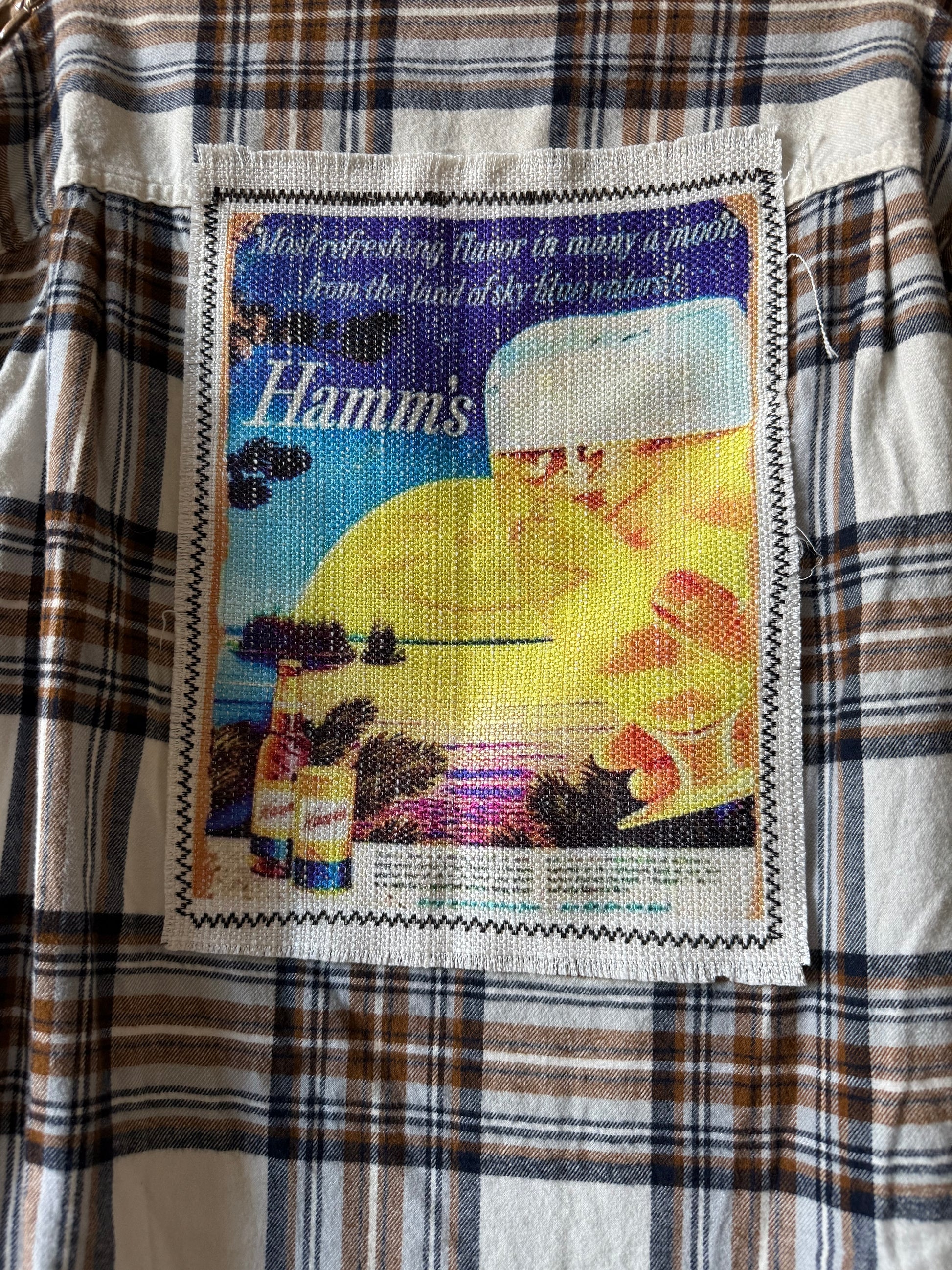 This super soft mens flannel is a great one of a kind layering piece! The sublimation patch on the back is a beautiful moon and your favorite brew!